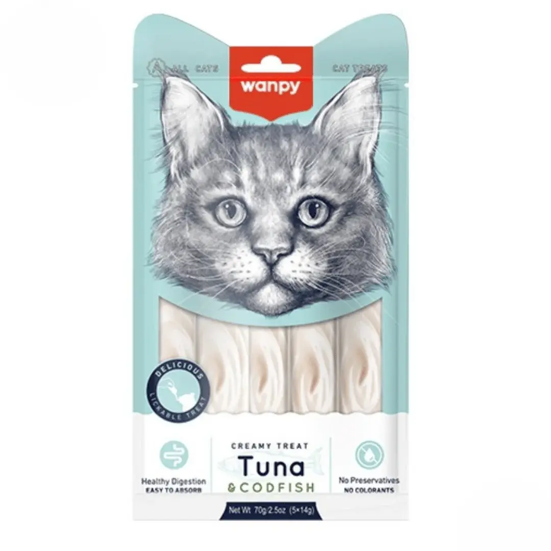 Indulge your feline friend with Wanpy Adult Cat Creamy Lickable Treats featuring a delectable blend of tuna and codfish. These treats are crafted with high-quality, all-natural ingredients, ensuring a rich and savory flavor that even the pickiest cats will love.